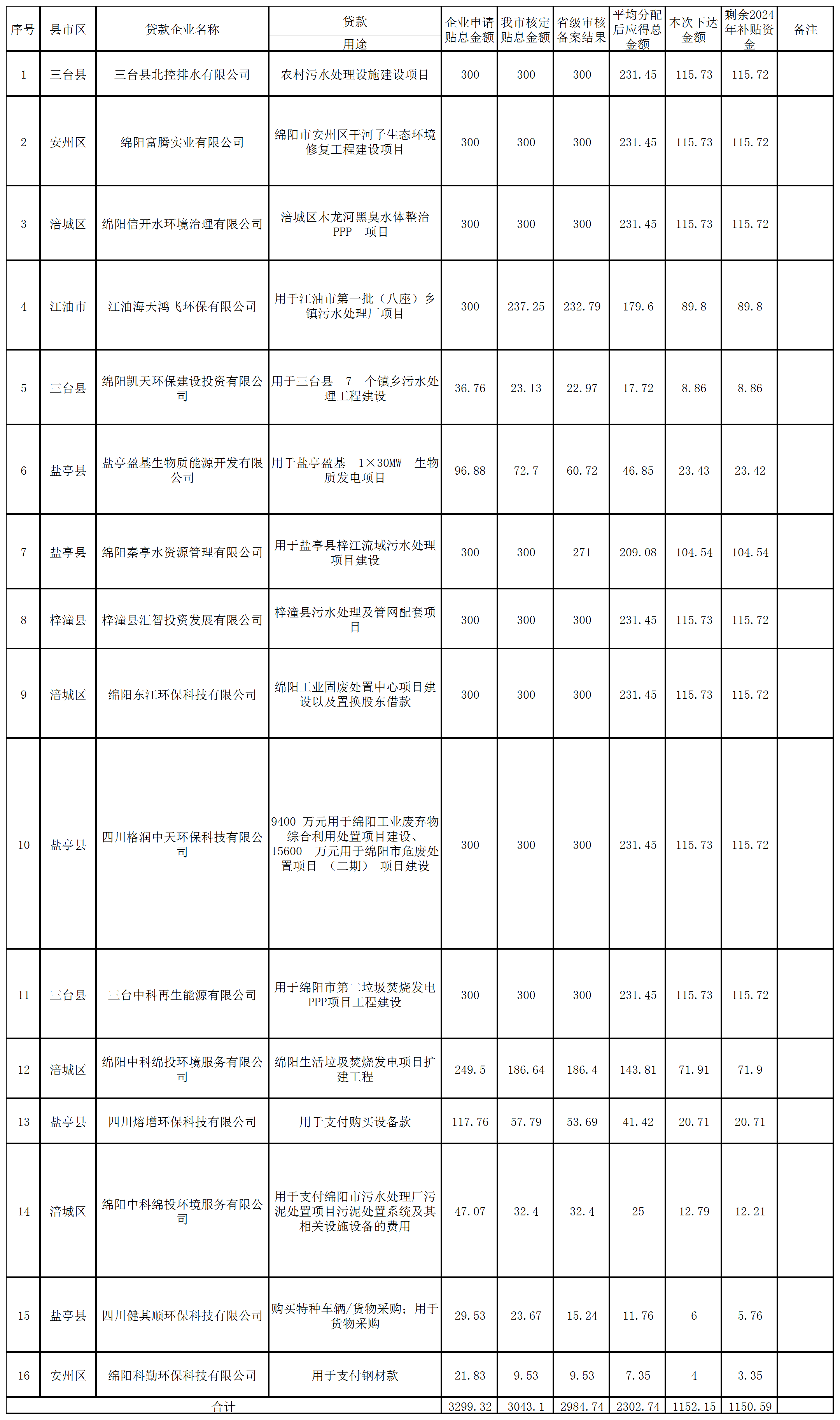 四川省污染防治成效鞏固財(cái)政貼息資金擬分配表
