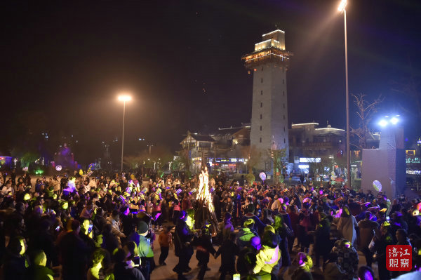 夜晚的寒意很濃,巴拿恰街區(qū)人流不斷。禹王廣場(chǎng)正在舉行羌族歌舞表演。只要不是雨天,巴拿恰禹王廣場(chǎng)每晚都會(huì)舉行羌族歌舞演出,晚上還有篝火晚會(huì)。