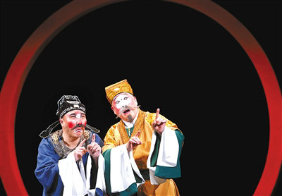 導演王紹軍從創(chuàng)排之初便給了這出戲“以歌舞演故事”的定位,于是全劇在“歌舞”上下足了功夫:借鑒了韓國經(jīng)典音樂劇《亂打》的“廚師舞”,貢老爺與貢少爺討價還價的“算盤舞”,將金錢擬人化之后貢老爺與“金錢人”的“雙人舞”——雖然看起來不那么京劇,甚至有些無厘頭,但卻突破了傳統(tǒng)程式,豐富了京劇舞臺的表達方式。在王紹軍看來,這出戲是為京劇“走出去”的一種嘗試,“中國戲曲要從‘走出去’逐漸向‘走進去’過渡,以往我們走出國門的大多是中國傳統(tǒng)經(jīng)典劇目。未來,我們也可以嘗試用戲曲排演西方經(jīng)典的方式與國外觀眾進行不同層面的交流。這樣的劇目對于國外觀眾而言可以不再分神、費解于劇情,而專注于中國戲曲的藝術(shù)表達。”