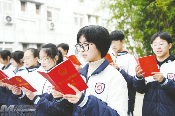 綿陽(yáng)南山中學(xué)學(xué)生在國(guó)旗下開(kāi)展憲法晨讀活動(dòng)