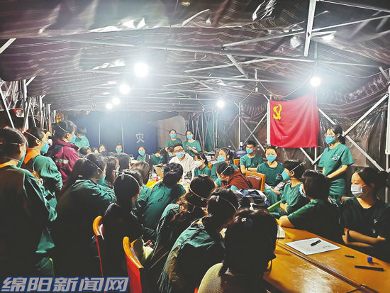 疫情防控期間,專班醫(yī)護人員和志愿者進行工作復(fù)盤總結(jié)