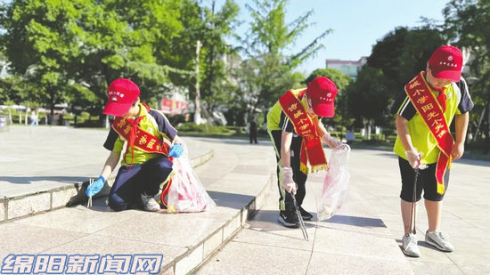 詩城小學(xué)孩子維護城市環(huán)境衛(wèi)生(詩城小學(xué)供圖)