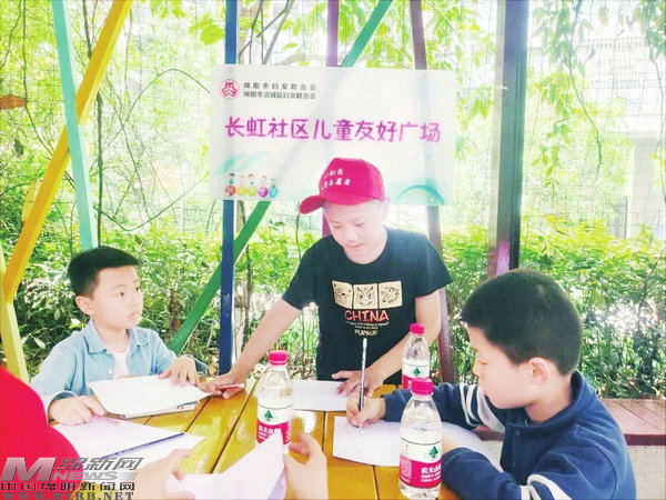 孩子們?cè)陂L(zhǎng)虹社區(qū)兒童友好廣場(chǎng)參加活動(dòng)