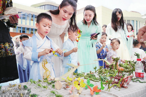 “六一”兒童節(jié)到來之際,綿陽(yáng)市經(jīng)開區(qū)文武路幼兒園將“非遺”搬進(jìn)幼兒園,以表演、體驗(yàn)、游戲等形式,讓孩子們?cè)诳鞓分懈惺芊沁z文化的魅力。