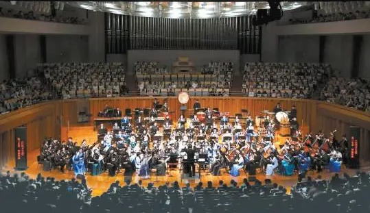 運(yùn)用特色民族樂器之多是《大運(yùn)河》的亮點(diǎn)之一。其中,笙協(xié)奏曲由北京民族樂團(tuán)的青年笙演奏家鄭楊獨(dú)奏,重在表現(xiàn)先人開通水利、征服自然的壯舉;阮協(xié)奏曲由北京民族樂團(tuán)青年演奏家李雨涵獨(dú)奏,旨在帶領(lǐng)觀眾領(lǐng)略運(yùn)河沿岸風(fēng)土人情。演出現(xiàn)場,北京京劇院梅派青衣鄭瀟還為《大運(yùn)河》帶來戲腔元素,令觀眾耳目一新。