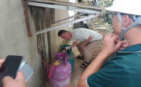 檢查人員在對(duì)信義鎮(zhèn)武引二水廠(chǎng)項(xiàng)目管理人員食堂檢查過(guò)程中發(fā)現(xiàn)該氣瓶為報(bào)廢氣瓶;軟管材質(zhì)不符合要求;未安裝液化石油氣報(bào)警器。