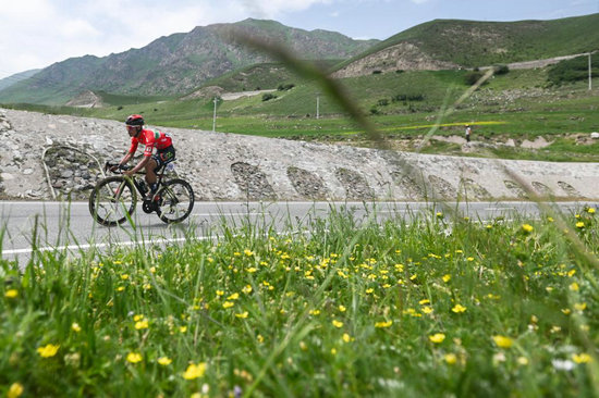 7月10日,參賽選手在比賽中騎行。新華社記者 張龍 攝