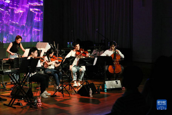 這是7月11日拍攝的音樂會(huì)現(xiàn)場(chǎng)。當(dāng)日,“極地游樂場(chǎng)——王斐南流行室內(nèi)樂融合劇場(chǎng)”在上海舉辦。作為2023上海夏季音樂節(jié)一系列演出之一,音樂家們?yōu)橛^眾演繹了一場(chǎng)多維融合的室內(nèi)樂作品音樂會(huì)。(新華社記者 辛夢(mèng)晨 攝)