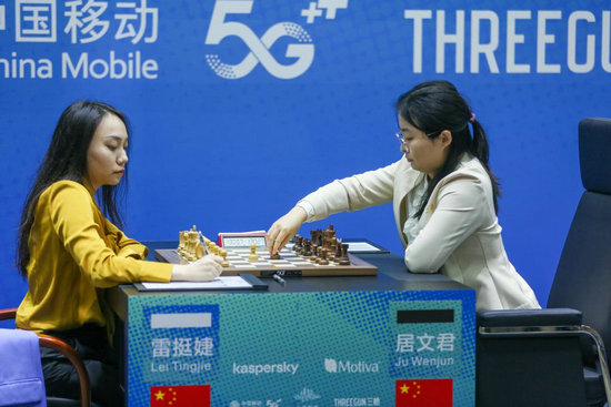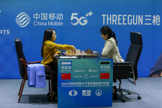 新華社上海7月11日電 2023年國(guó)際棋聯(lián)女子世界錦標(biāo)賽對(duì)抗賽(女子世界冠軍賽)11日在上海棋院戰(zhàn)罷第五輪,挑戰(zhàn)者雷挺婕執(zhí)白擊敗衛(wèi)冕冠軍居文君,以一場(chǎng)勝利結(jié)束開賽以來全部和棋的場(chǎng)面,總比分3:2暫時(shí)領(lǐng)先。