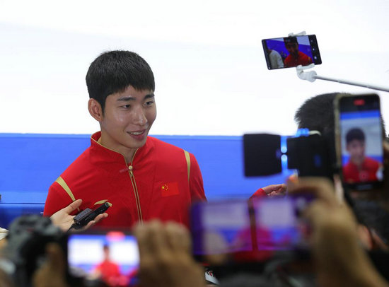7月11日,訓(xùn)練營運(yùn)動員林孝埈接受采訪。新華社記者 丁旭 攝