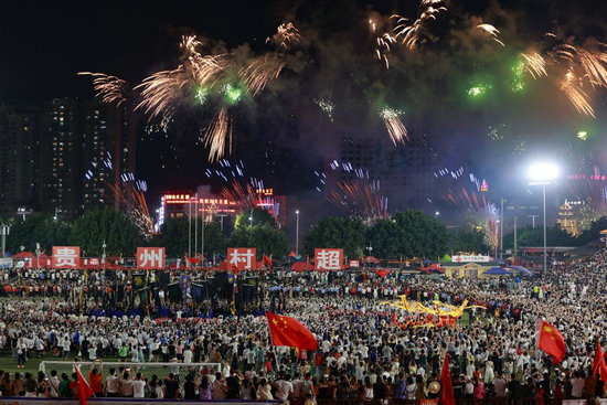 這是7月29日拍攝的比賽結(jié)束后的焰火表演。新華社記者 劉續(xù) 攝