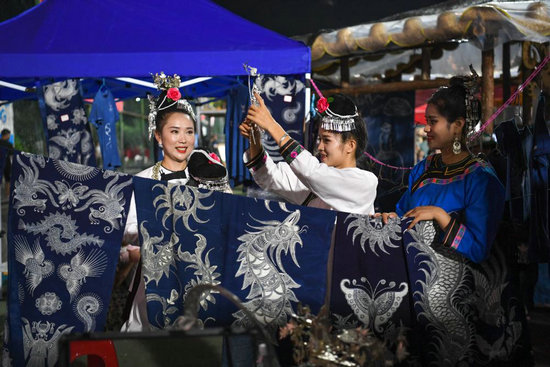 讓“村超”“村BA”迅速火遍全網(wǎng)的不光是精彩、純粹的球賽,還有豐富多彩的民族文化展演。其中,絢麗多彩的民族服飾成為一大亮點(diǎn)。在體育賽事的帶動(dòng)下,當(dāng)?shù)匾恍┥贁?shù)民族服飾成為備受追捧的時(shí)尚單品。