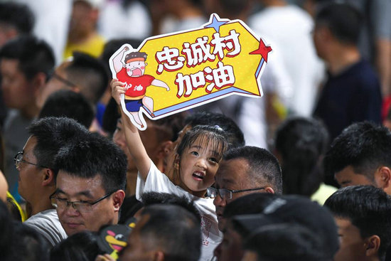 7月29日,一名小朋友在“村超”比賽現(xiàn)場(chǎng)為忠誠(chéng)村球隊(duì)加油。新華社記者 楊文斌 攝