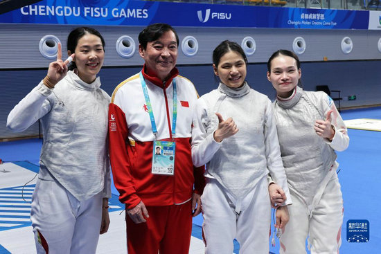 當(dāng)日,在成都舉行的第31屆世界大學(xué)生夏季運(yùn)動(dòng)會(huì)擊劍女子花劍團(tuán)體金牌賽中,中國(guó)隊(duì)以45比22戰(zhàn)勝意大利隊(duì),獲得金牌。
