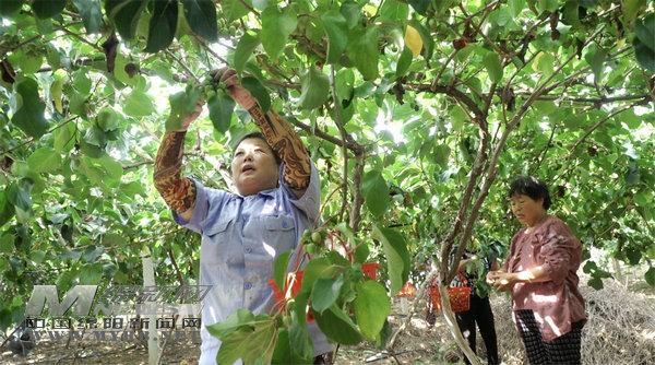 日前,記者走進(jìn)九合村奇異谷家庭農(nóng)場(chǎng)種植基地,放眼望去,一片綠意盎然。寬大的葉片下掛滿了拇指大小的果實(shí),光滑圓潤(rùn),形似小棗,惹人喜愛(ài)。村民馮桂瓊和鄰居們正在藤架下熟練地將一顆顆成熟的奇異莓摘下(如圖),裝框、包裝、運(yùn)輸,現(xiàn)場(chǎng)一派忙碌的豐收景象。“九合村的奇異莓品質(zhì)很好,我們?cè)诩议T(mén)口就把錢(qián)掙到了,一天能掙100多元。”馮桂瓊告訴記者。