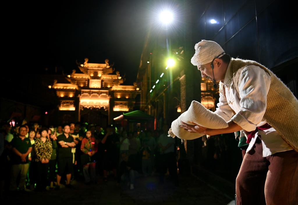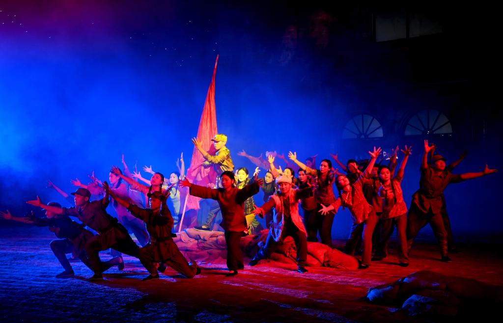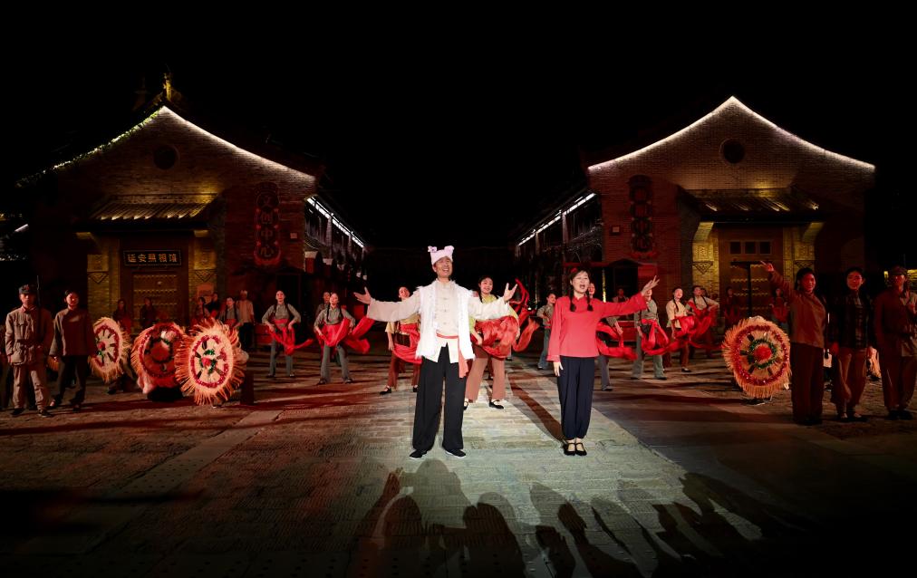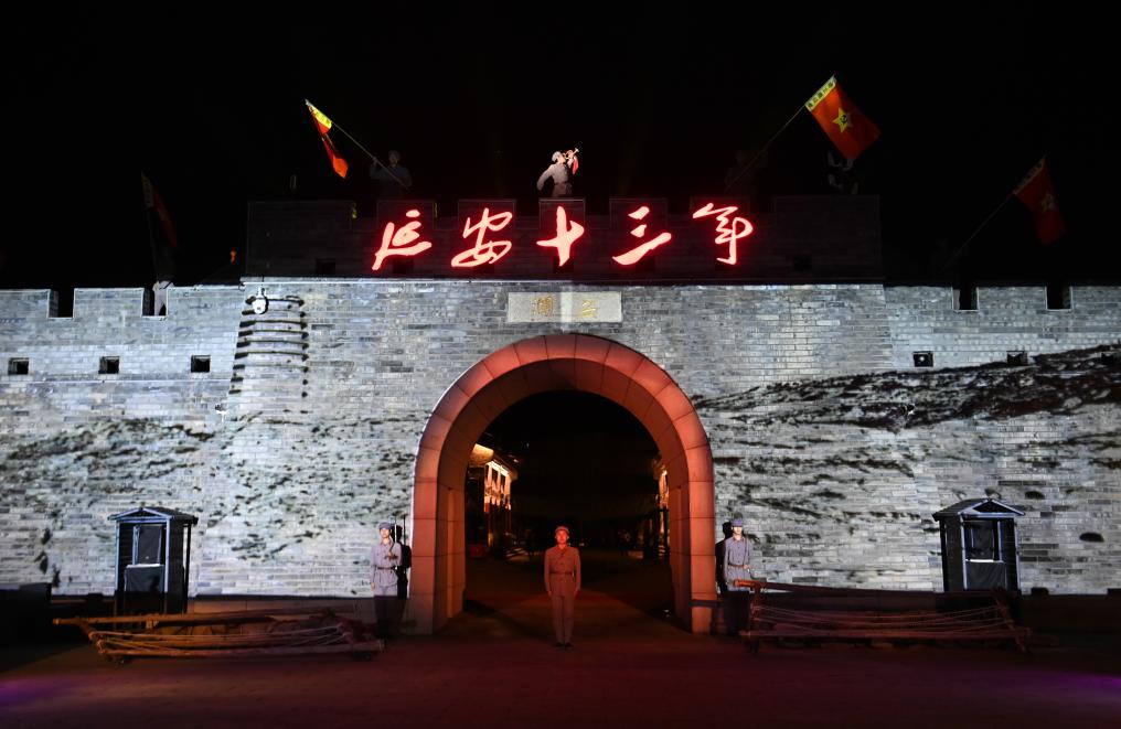 8月31日,演員在陜西延安的金延安文化旅游產(chǎn)業(yè)園區(qū)表演紅色歌舞劇《延安十三年》。新華社記者 鄒競(jìng)一 攝