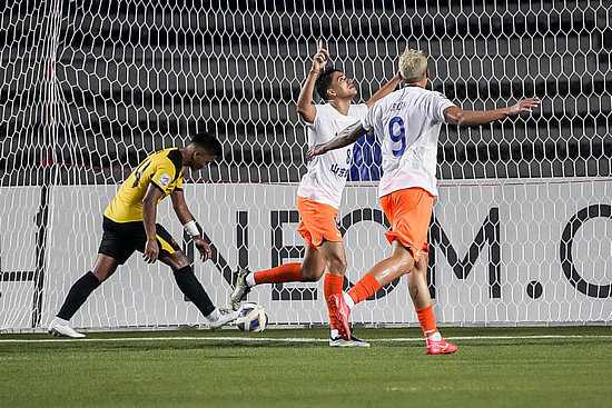 第79分鐘,卡雅隊隊員送出直塞球,山東隊后衛(wèi)和門將出現(xiàn)判斷失誤,替補(bǔ)出場的加約索抓住機(jī)會,為卡雅隊扳回一球。