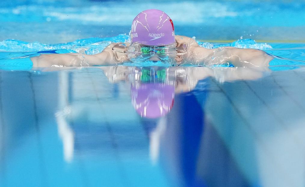 福岡世錦賽包攬男子蛙泳50米、100米和200米冠軍的覃海洋當天在男子100米蛙泳的比賽中一日內(nèi)兩破賽會紀錄,并憑借57秒76的成績獲得本屆亞運會的個人首金。隊友閆子貝以59秒09獲得銀牌,韓國選手崔東烈位居第三。