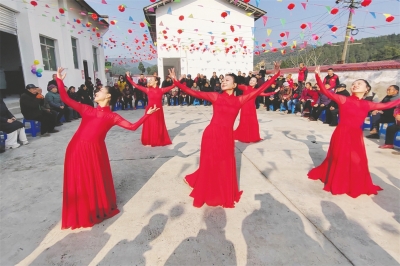在鹽亭縣岐伯鎮(zhèn)燕來村,村民們歡聚一堂,觀看自編自導(dǎo)自演的小品、情景劇、舞蹈等反映新時(shí)代新生活的精彩節(jié)目。12時(shí),熱鬧的壩壩宴準(zhǔn)時(shí)開席,燒白、紅燒肉、羊肉湯等一道道充滿年味的菜品端上桌,席間,鄉(xiāng)鄰們共敘鄉(xiāng)情,共話發(fā)展,其樂融融。