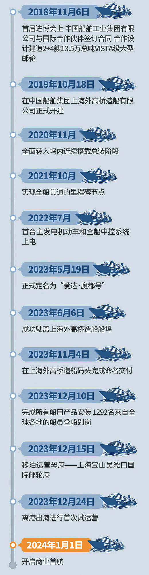 周琦介紹,從2018年11月正式簽訂建造合同,到2023年11月“愛達·魔都號”命名交付,中國船舶集團和外高橋造船公司廣大職工攻克了無數(shù)難關(guān)、付出了無數(shù)心血,終于摘下了這顆璀璨的“明珠”。