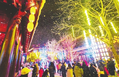 浪漫飄雪、長安街景、國風(fēng)演藝……綿陽方特東方神畫長安子時夜活動接待逾3萬游客狂歡迎新。
