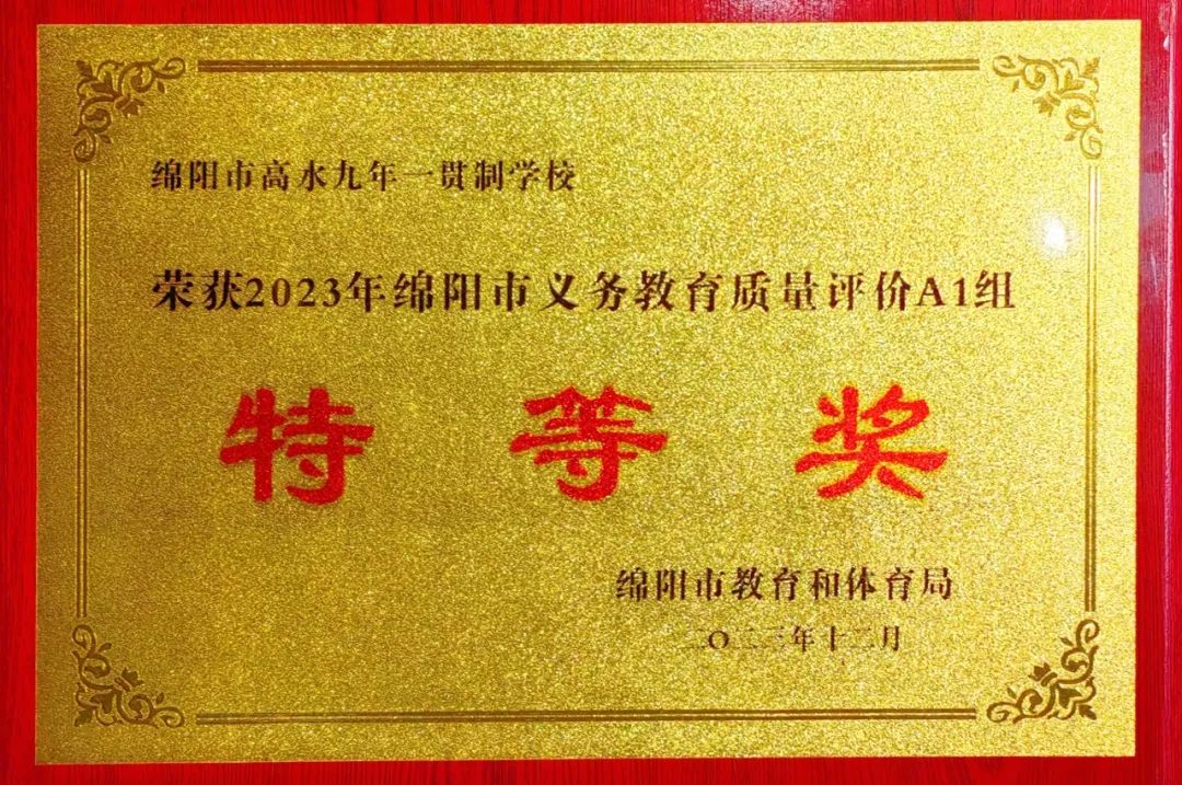 1月5日,在綿陽(yáng)市學(xué)前教育和義務(wù)教育質(zhì)量工作推進(jìn)會(huì)上,綿陽(yáng)市高水九年一貫制學(xué)校(城北七中)再次以出色的辦學(xué)業(yè)績(jī)、卓越的社會(huì)口碑、鮮明的辦學(xué)特色榮獲2023年綿陽(yáng)市義務(wù)教育質(zhì)量A1組特等獎(jiǎng)。