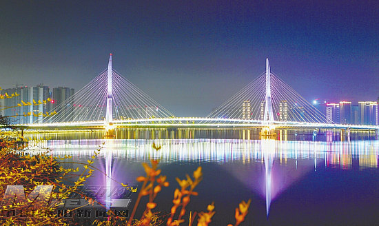 涪江兩岸流光溢彩 (記者 王勇 攝)