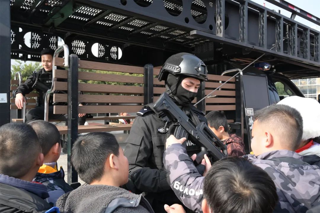 瞧,一張張笑臉洋溢著難掩的興奮,更流露出對(duì)警察這一神圣職業(yè)的無比崇拜與向往。少先隊(duì)員們情不自禁地走近特警叔叔身邊,向他們行隊(duì)禮,表達(dá)自己崇高的敬意。少先隊(duì)員們紛紛表示,因?yàn)橛兴麄兊膱?jiān)守和奉獻(xiàn),我們的城市才會(huì)越來越美好,我們的校園才會(huì)越來越平安!