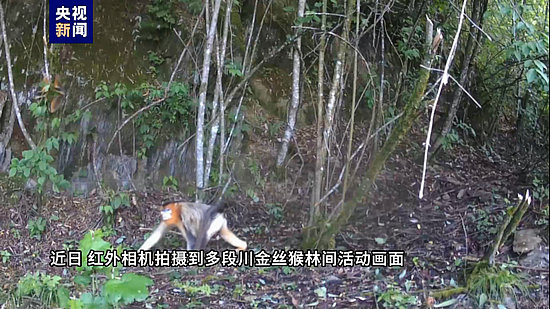 畫面中,川金絲猴有的一只單獨行動,大方和紅外相機“對視”,有的組隊從紅外相機前跑過,也有聚集“開會”的畫面。它們在樹林中自由自在地玩耍,時而追逐打鬧、時而攀爬樹木、時而跳躍飛翔,猴子們非常聰明機靈,動作敏捷靈活,在鏡頭里展現(xiàn)它們獨特的魅力。