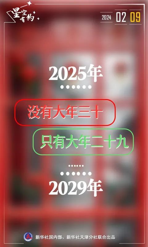 楊婧表示,大年三十“缺席”的情形差不多每隔幾年就會出現(xiàn)一次,如2013年、2016年、2022年,甚至于還有可能會連續(xù)“缺席”,如2025年到2029年連續(xù)5年、2039年至2041年連續(xù)3年都沒有大年三十。但連續(xù)5年,臘月均逢小月,都沒有大年三十,比較罕見。正因如此,這則消息格外引人注目。