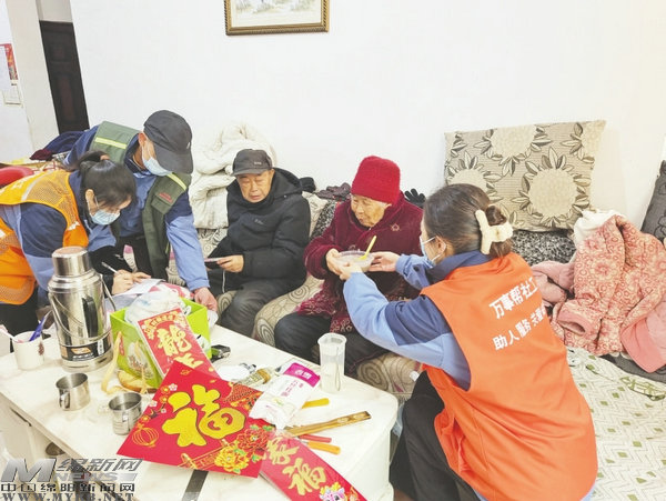 除了現(xiàn)場(chǎng)送粥外,志愿者和社區(qū)工作人員還分成小組入戶(hù),為社區(qū)高齡、獨(dú)居老人送臘八粥。在涪城區(qū)城廂街道臨園路東段社區(qū),社區(qū)婦聯(lián)開(kāi)展了以“粥香暖寒冬,濃情話(huà)臘八”為主題的臘八節(jié)送粥活動(dòng)。