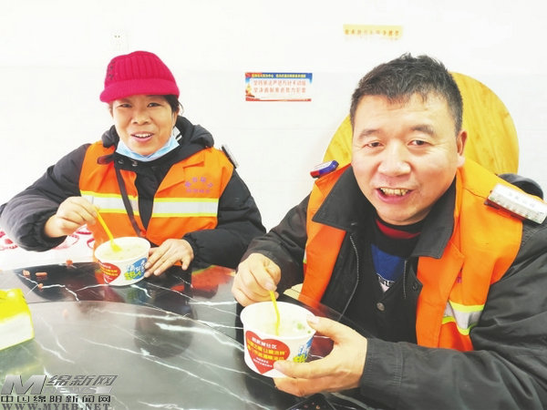 “喝著暖暖的臘八粥,真的是甜在嘴里,暖在心里。”環(huán)衛(wèi)工人李阿姨說(shuō)。