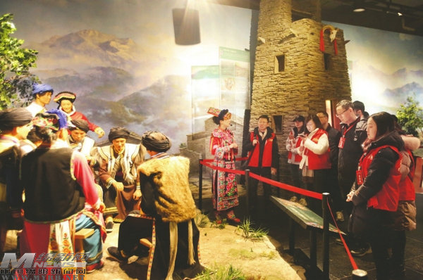 “這面墻上是‘羌’字的歷代寫(xiě)法,最早可以追溯到甲骨文。”“這是我們羌族的特色建筑碉樓。”“羌醫(yī)與傳統(tǒng)中醫(yī)有很多相似之處,同樣有針灸、推拿”……在北川羌族民俗博物館,采訪(fǎng)團(tuán)沉浸式體驗(yàn)“大禹故里”“中國(guó)羌城”的深厚歷史文化底蘊(yùn)。2013年1月開(kāi)館的北川羌族民俗博物館,集收藏、保護(hù)、展示和研究為一體,是繼承和弘揚(yáng)古羌民俗文化的重要窗口。