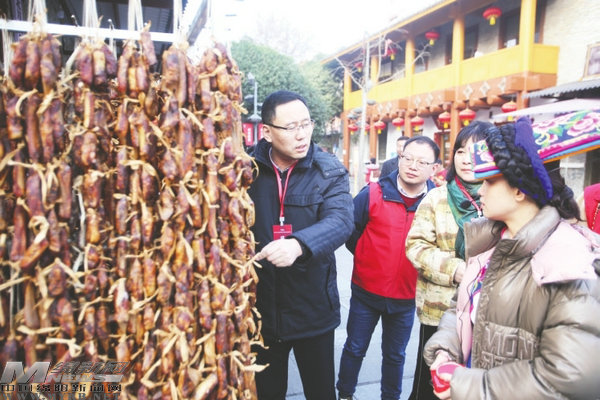 采訪(fǎng)團(tuán)首站來(lái)到北川巴拿恰。巴拿恰位于北川新縣城城市文化中心軸上,集觀(guān)光、購(gòu)物、餐飲、休閑娛樂(lè)等多功能為一體,羌族特色建筑鱗次櫛比,羌繡等非遺文創(chuàng)產(chǎn)品精美絕倫,生態(tài)臘肉、手工茶等特產(chǎn)琳瑯滿(mǎn)目。