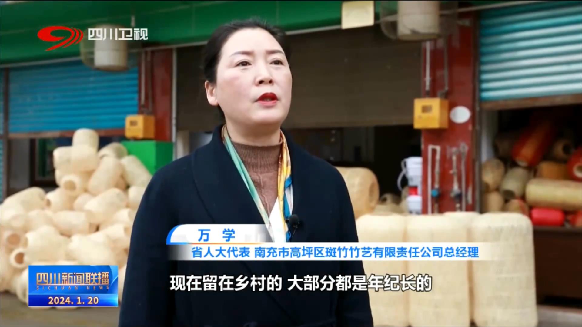 省人大代表 南充市高坪區(qū)斑竹竹藝有限責任公司總經(jīng)理 萬學:現(xiàn)在留在鄉(xiāng)村的,大部分都是年紀長的,這部分群體其實他是沒有固定的收入跟經(jīng)濟來源的,(要)讓他們實現(xiàn)居家靈活就業(yè)增收。