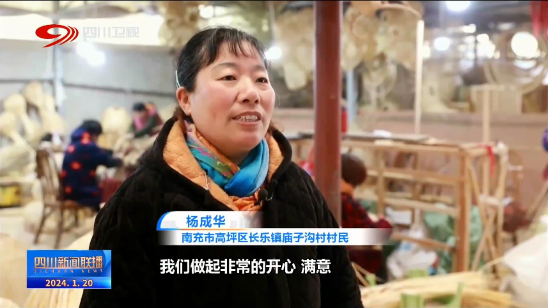 南充市高坪區(qū)長樂鎮(zhèn)廟子溝村村民 楊成華:工資一個月有三千多至四千,我們做起非常的開心、滿意。在廠頭可以編,在家里也可以編,老人小孩都照看了。