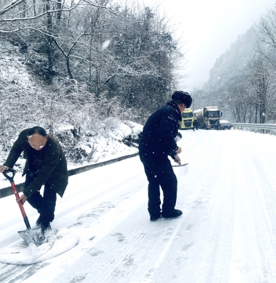 1月21日、22日,針對降溫天氣,北川交警大隊迅速動員開展全縣冰雪道路隱患摸排,對受降雪影響較大的路段進(jìn)行臨時管控,在遠(yuǎn)端分流引導(dǎo)車輛繞行。(記者 任露瀟 劉晏男)