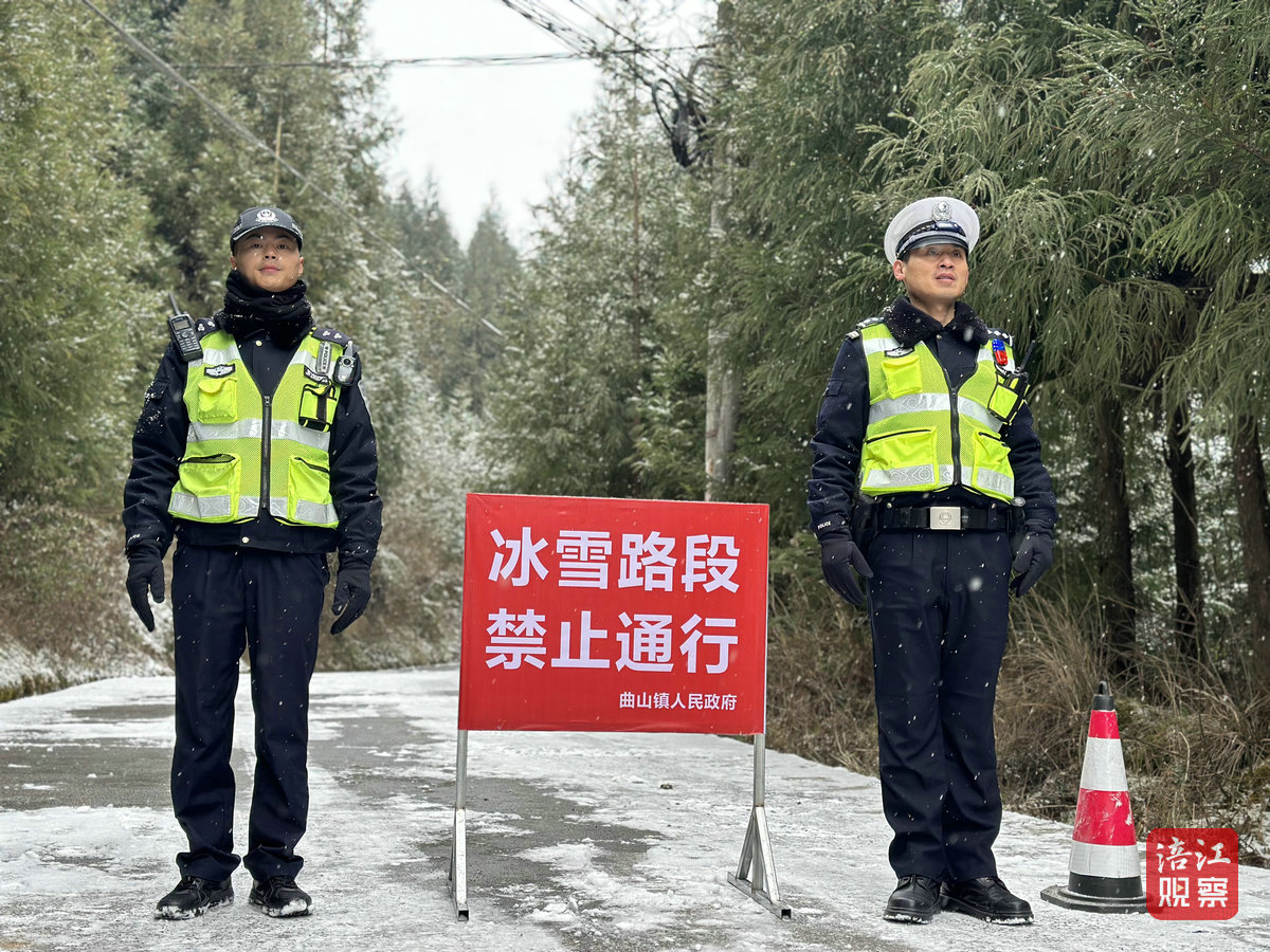 在擂鼓鎮(zhèn)擂禹路段,民警在重要路口設卡執(zhí)勤,引導群眾將車輛停放在山下的安全地點。在景家山路段,路面積雪較厚,民警在各路段有序開展除雪防滑作業(yè),清掃路面積雪和冰塊。