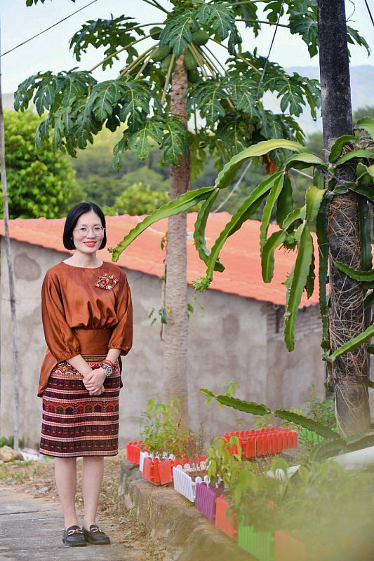 關(guān)鍵人物的其中之一,是如今任職毛道鄉(xiāng)黨委書(shū)記的黃凌鳳。2023年7月27日,“消碳莊園”項(xiàng)目交流會(huì)當(dāng)天,她穿著一身以當(dāng)?shù)乩枳宸沁z紡染織繡的傳統(tǒng)黎錦筒裙,向來(lái)賓講述關(guān)于這座小村落充滿能量的現(xiàn)在與未來(lái)。