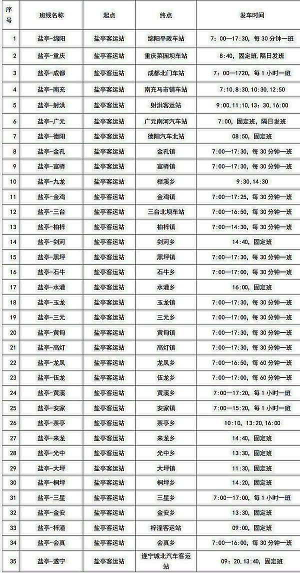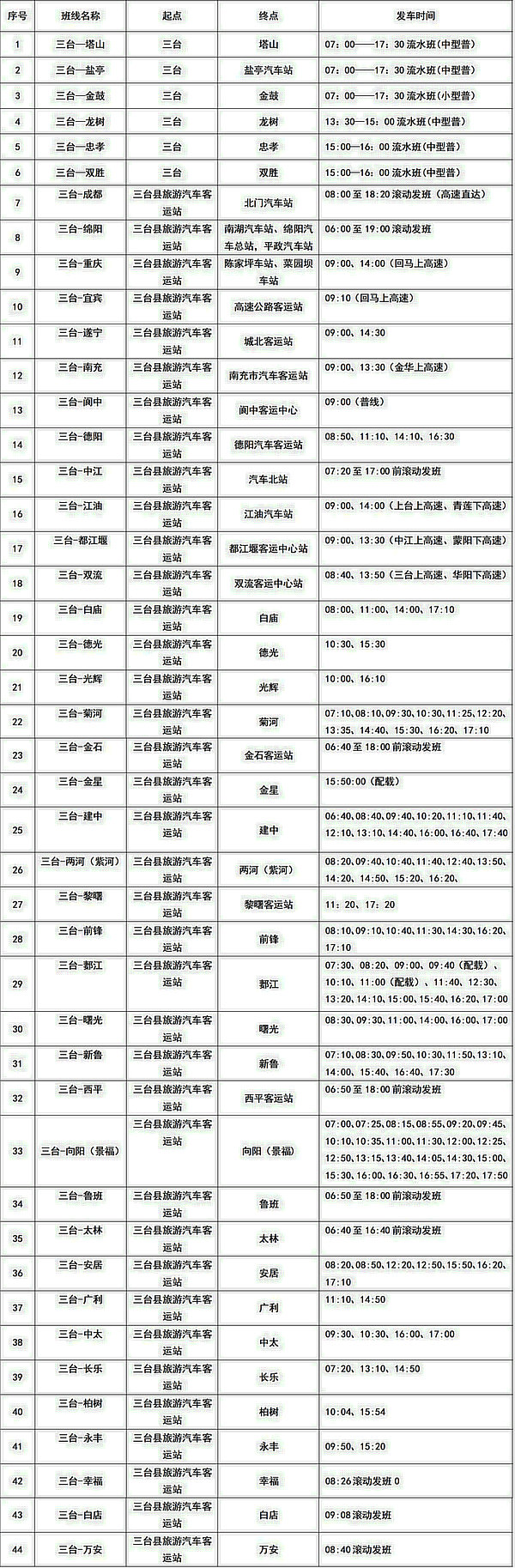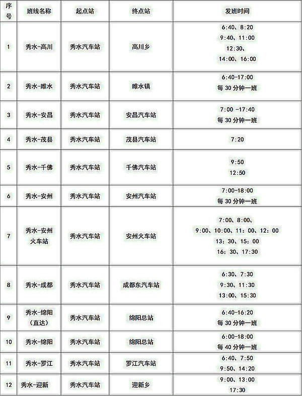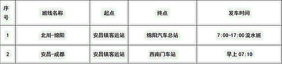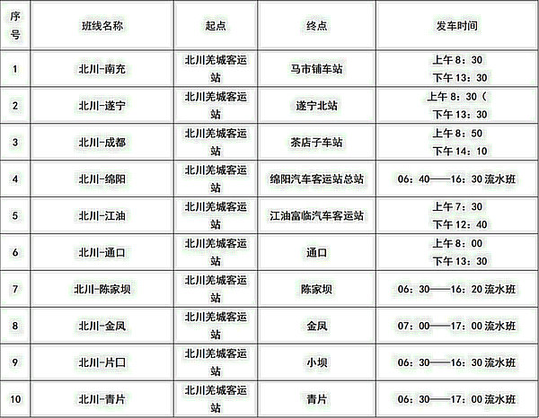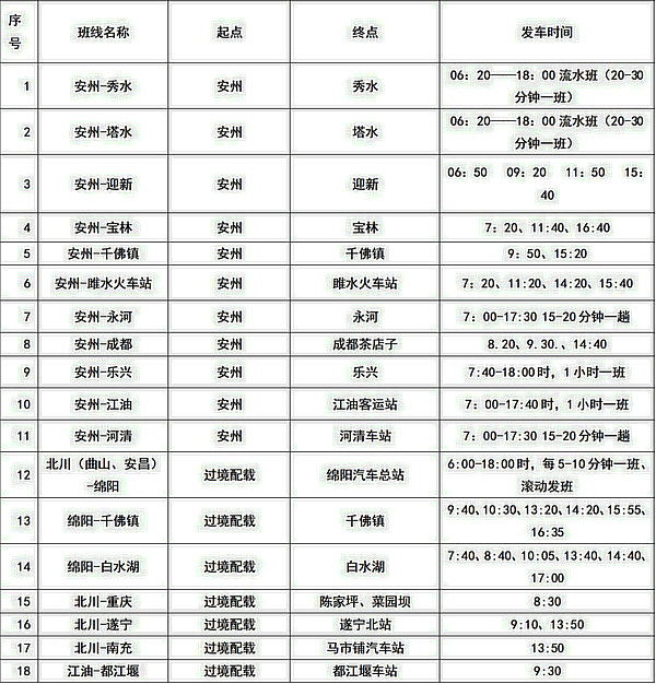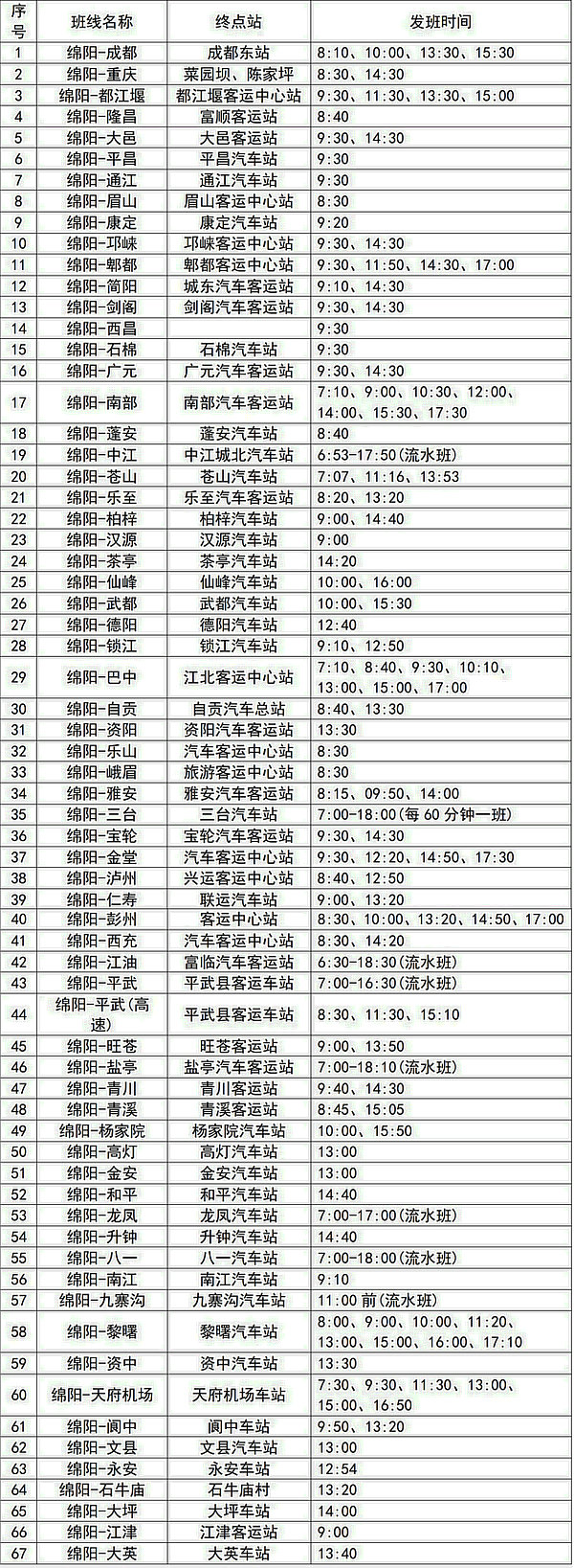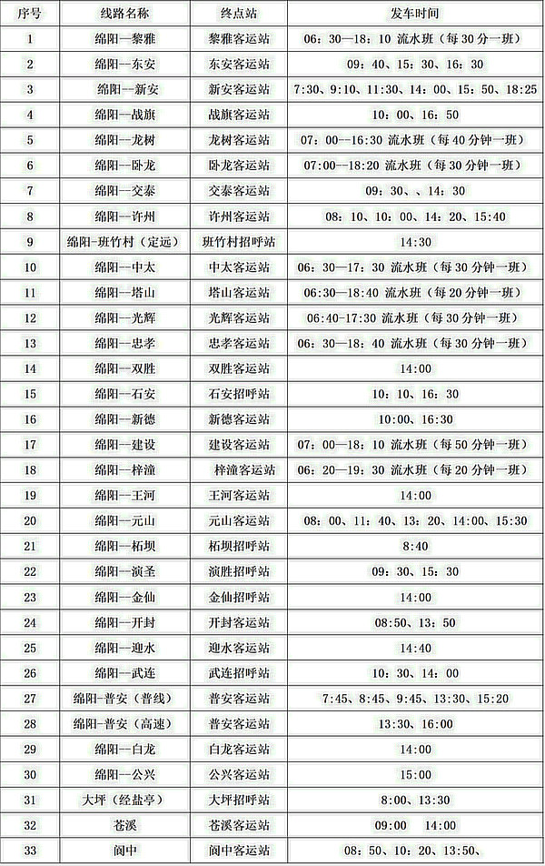 綿陽(yáng)各區(qū)(縣)車(chē)站班次時(shí)刻表