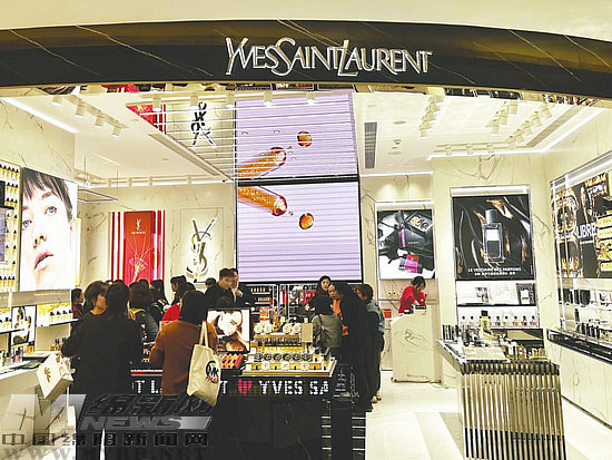 圣羅蘭美妝專柜前市民正挑選商品(蔣竺鈺 攝)