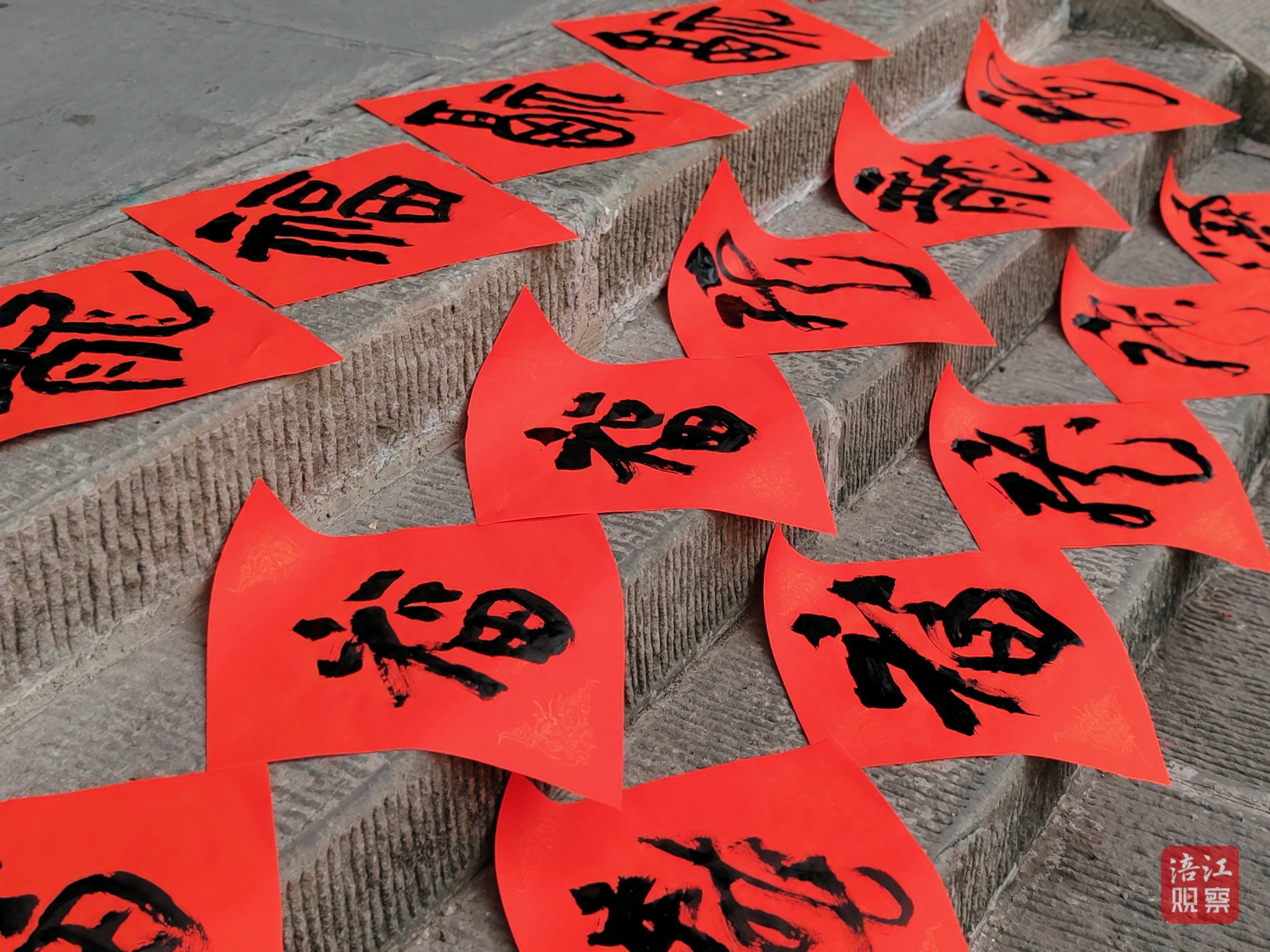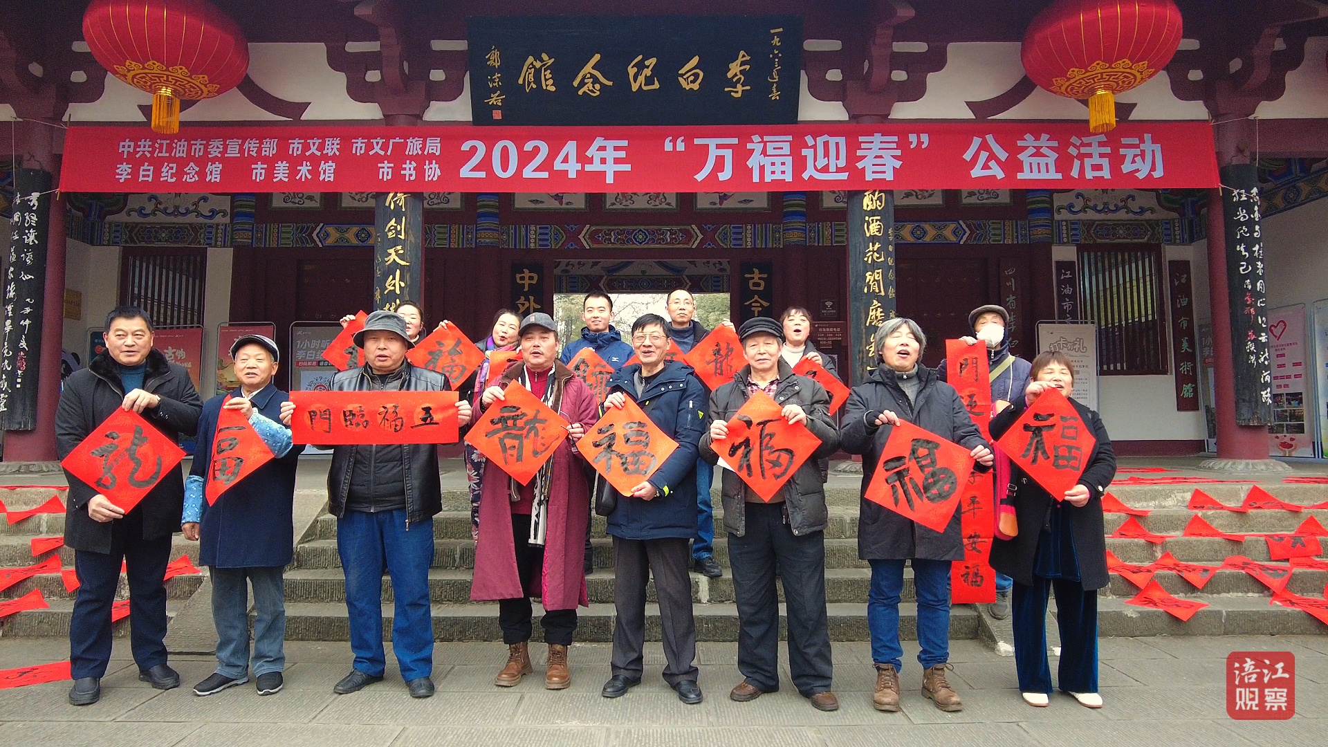 在江油市李白紀(jì)念館前廣場,江油市委宣傳部組織“萬福迎春”贈寫春聯(lián)公益活動,向市民送出新春的美好祝福。