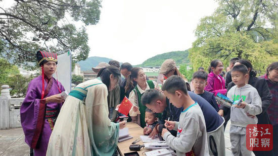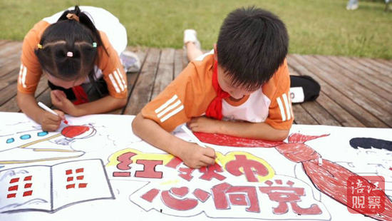 當(dāng)?shù)孛袼捱€組織小朋友們制作了一把長達(dá)10米的漆扇。在漆扇畫卷上,從壯麗的山河到現(xiàn)代的科技,孩子們用五彩斑斕的畫筆描繪出對(duì)祖國的美好祝愿。