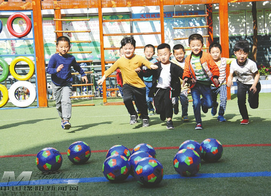 ‘’孩子們在校園內(nèi)開心做游戲