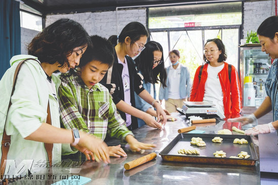 游客在秀水鎮(zhèn)鄉(xiāng)村印象農(nóng)旅基地體驗面包制作