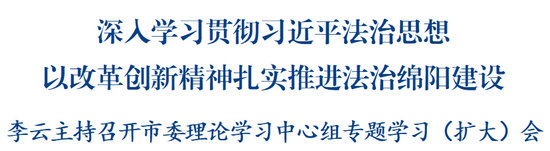綿陽(yáng)新聞網(wǎng)訊 10月15日,市委理論學(xué)習(xí)中心組舉行專題學(xué)習(xí)(擴(kuò)大)會(huì),集中學(xué)習(xí)習(xí)近平法治思想,市委副書記、市長(zhǎng)李云主持會(huì)議并講話。他強(qiáng)調(diào),要深入學(xué)習(xí)貫徹習(xí)近平法治思想和黨的二十屆三中全會(huì)精神,全面落實(shí)省委十二屆六次全會(huì)部署要求,以改革創(chuàng)新精神扎實(shí)推進(jìn)法治綿陽(yáng)建設(shè),為推動(dòng)高質(zhì)量發(fā)展提供堅(jiān)強(qiáng)法治保障。