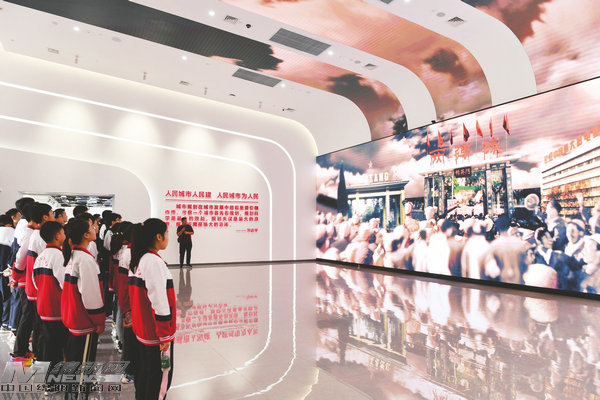 在綿陽(yáng)城市規(guī)劃展覽館,師生們通過多媒體影片感受綿陽(yáng)的科技魅力和城市底蘊(yùn)。