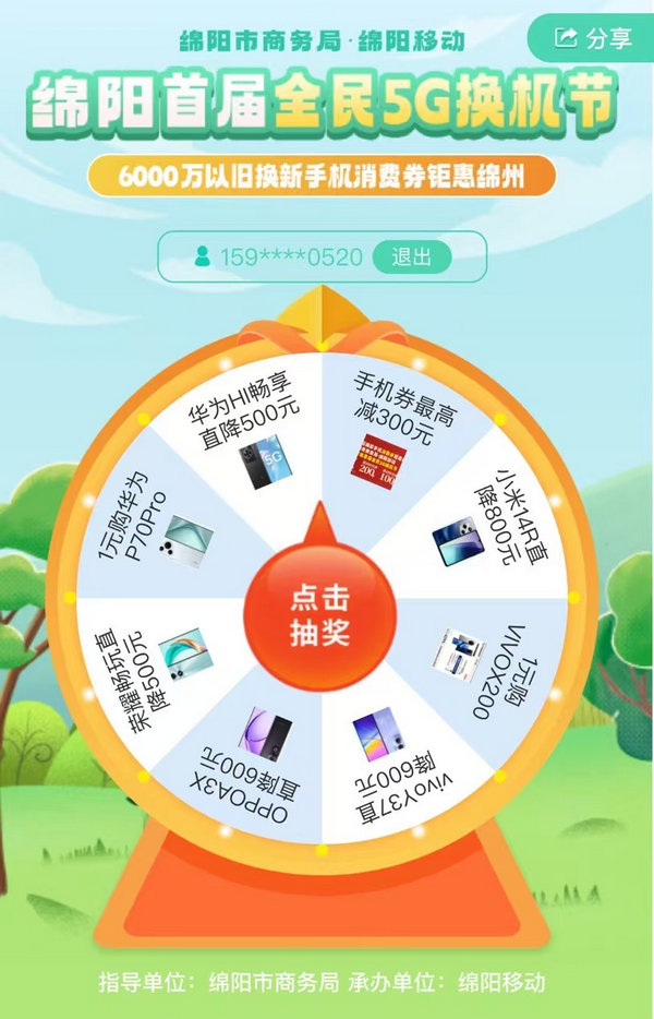 客戶通過綿陽移動營業(yè)廳現(xiàn)場辦理或掃本次活動二維碼參加消費券抽獎,然后到指定移動營業(yè)廳參與活動即可。