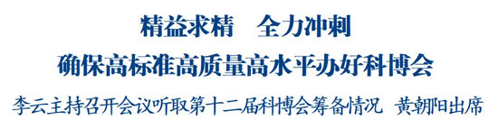 在聽取科博會籌備情況匯報后,李云指出,本屆科博會是首次全面實行市場化辦會。自籌備工作啟動以來,各主辦單位、指導單位、承辦單位主動作為、通力協(xié)作,整體工作推進有力有序有效。要始終堅持市場運作、政府支持、社會參與的辦會模式,緊盯籌備工作時間進度,及時協(xié)調(diào)解決籌備過程中出現(xiàn)的困難和問題,全力以赴抓好各環(huán)節(jié)、各板塊目標任務(wù)落實,努力把本屆科博會辦得更加精彩、更有特色、更富實效。