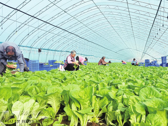 在該鎮(zhèn)高棚村蔬菜現代農業(yè)園區(qū),當地菜農穿梭在田間,忙著收割小白菜。經過分揀、裝箱、過秤、打包、裝車,這些蔬菜很快將出現在千里之外的超市、農貿市場和餐桌上。